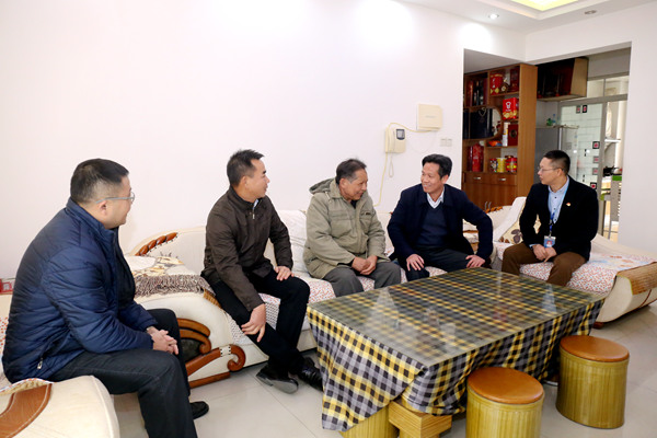 2月7日,集團公司黨委書記、董事長朱堅和,紀委書記韋慶和到交通設計院有限公司職工小區(qū)看望慰問退休困難職工黃仁高。在黃仁高同志家中,朱堅和關心詢問他的病情,了解他的診療情況,與他分享公司近年來在生產經營、科研創(chuàng)新方面取得的重大成績,并對以他為代表的設計院老一輩員工為設計院發(fā)展所做的貢獻表示感謝,代表集團公司黨委向他及他的家人致以問候和祝福。